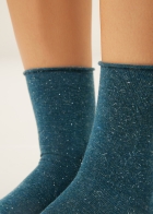 Короткие женские носки из мягкой пряжи с добавлением кашемира с комфортным блестящим бортиком без резинки. Эти роскошные и теплые носки созданы, чтобы вы могли наслаждаться комфортом, не отказываясь от стиля. Добавьте элегантный штрих в свой повседневный зимний гардероб.