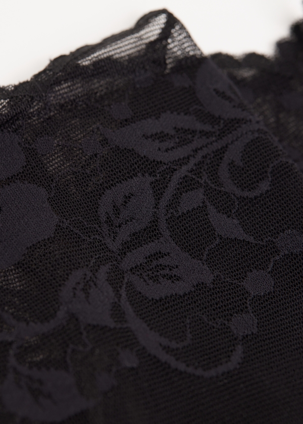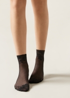 Женские короткие носки из тюля с кружевным цветочным узором. Волнистый бортик. Подошва из хлопка.