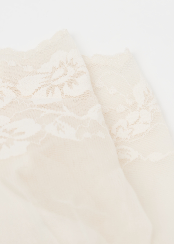 Женские короткие носки из тюля с кружевным цветочным узором. Волнистый бортик. Подошва из хлопка.