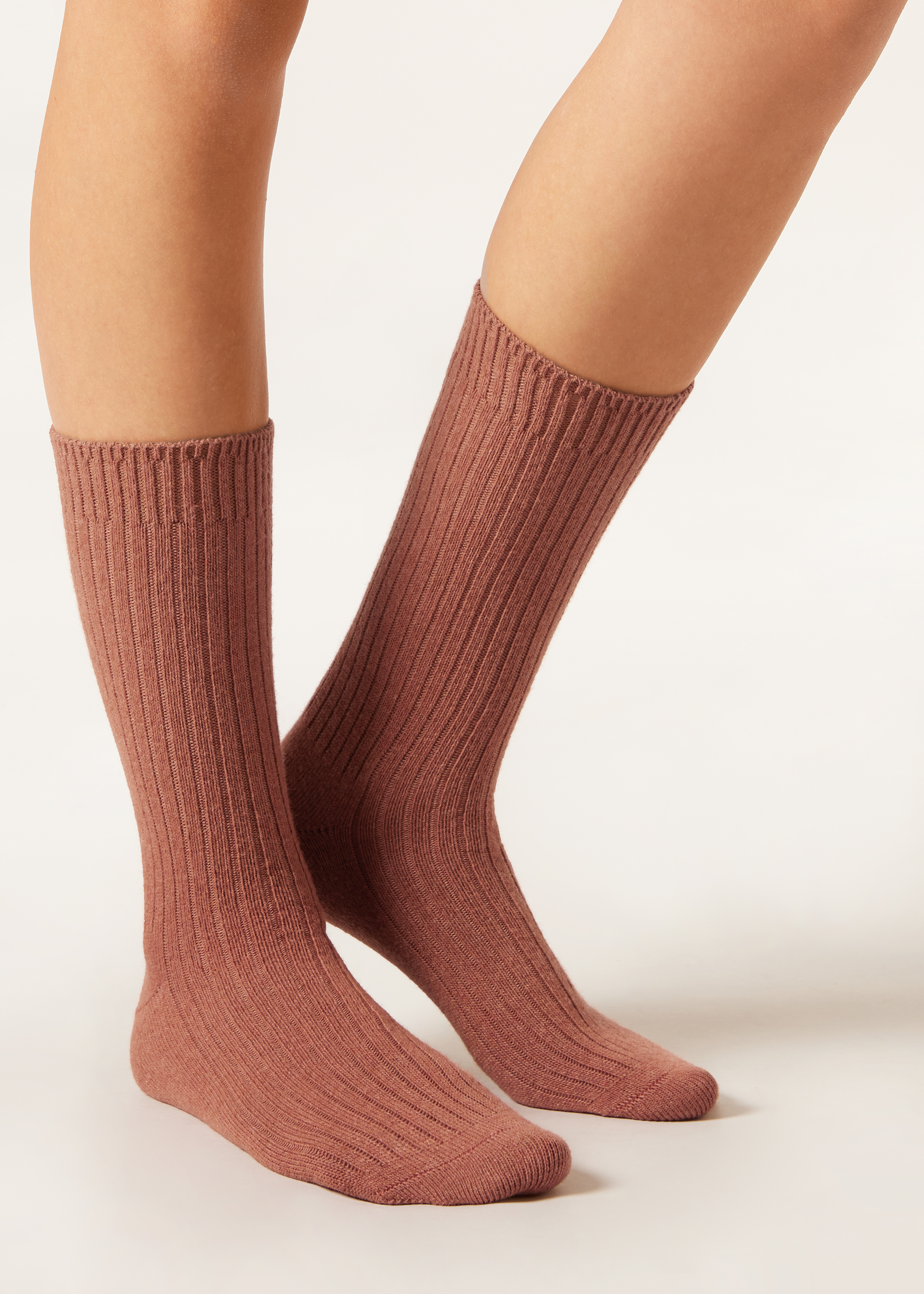 Короткие носки в рубчик с шерстью и кашемиром, выполненные из теплой и комфортной ткани.