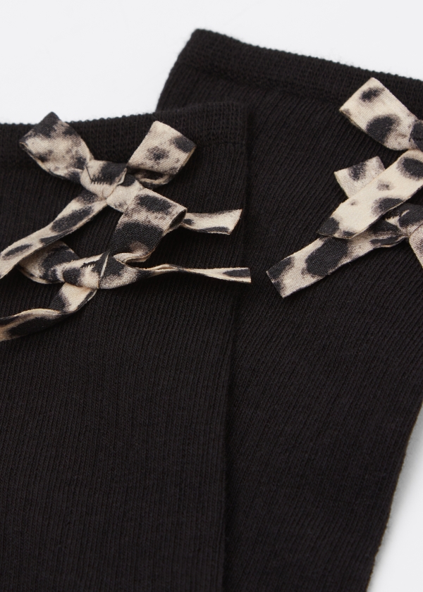 Женские короткие носки из мягкого хлопка в рубчик — идеальное сочетание комфорта и стиля. Модная деталь: аппликация в виде бантиков с тропическим принтом.