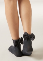 Женские короткие носки из хлопка. Модель с удобным бортиком и декоративным большим бантом сзади.