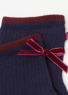 Короткие хлопковые носки в рубчик для девочек, украшенные элегантным бантиком. Мягкая, прочная и удобная модель с эластичным бортиком, обеспечивающим плотную посадку.