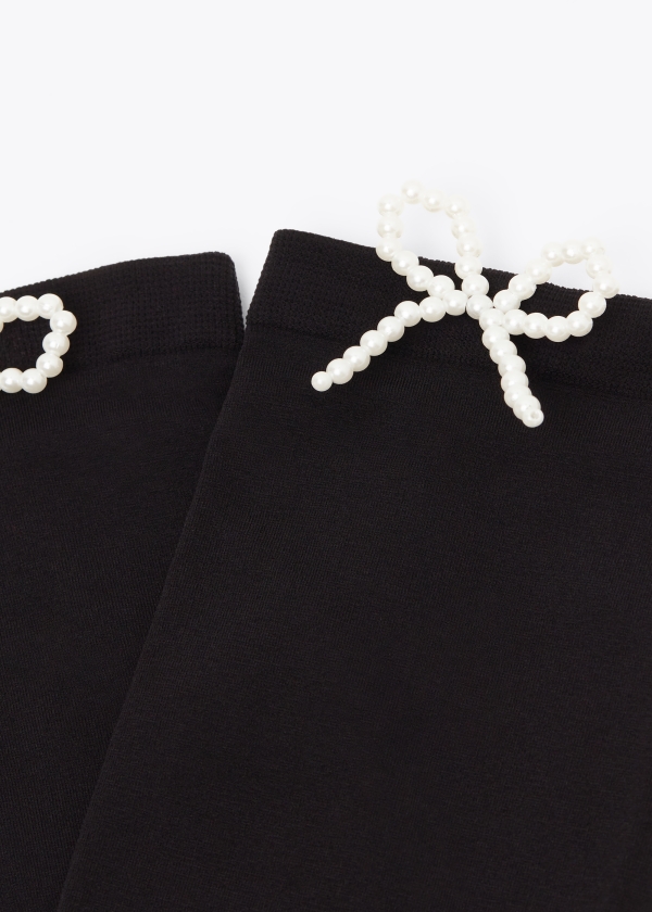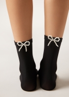 Женские короткие носки из мягкой микрофибры плотностью 50 ден. Низкий бортик украшен изящным бантиком из бусин. Эта удобная и элегантная модель придаст оттенок изысканности вашему образу.
