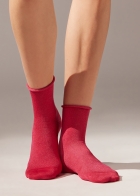 Женские короткие носки с блестками и удобным бортиком. Комфортная модель с легким сиянием.