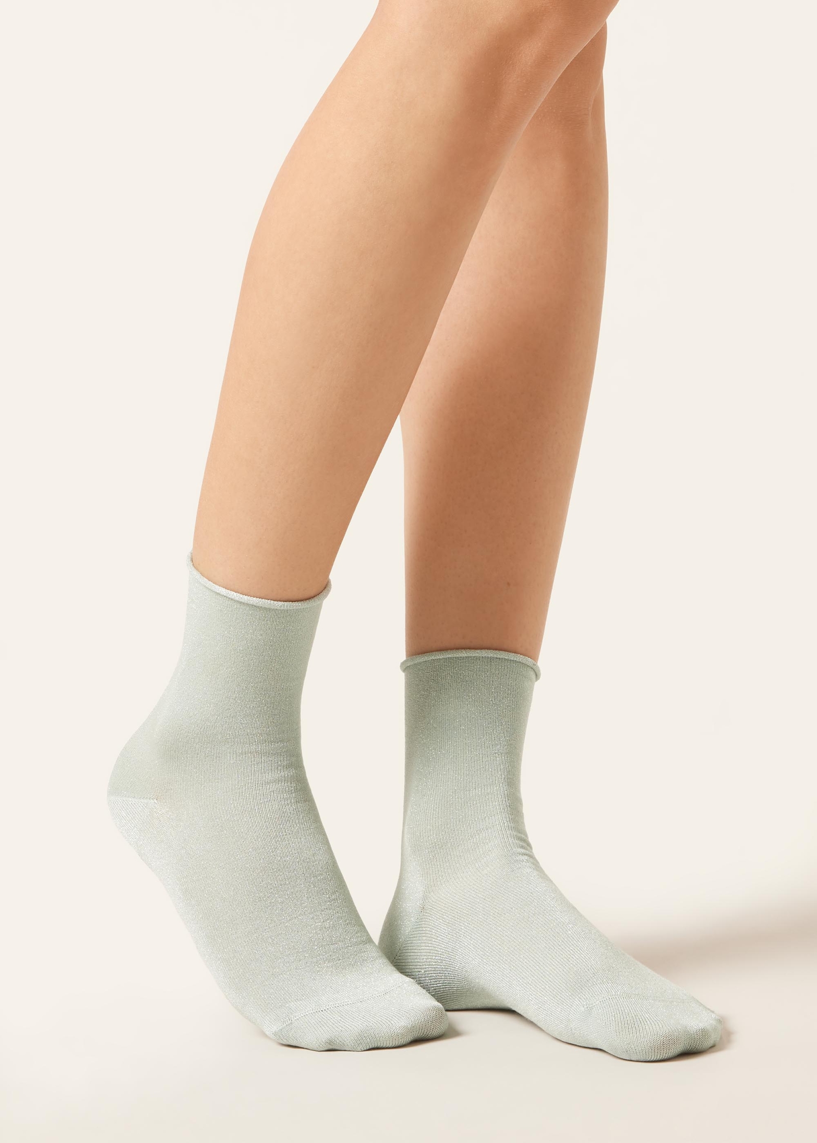 Женские короткие носки с блестками и удобным бортиком. Комфортная модель с легким сиянием.