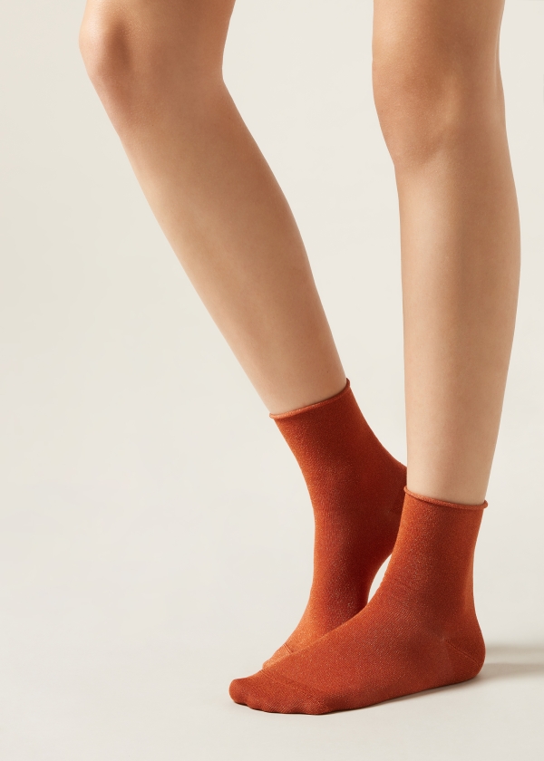 Женские короткие носки с блестками и удобным бортиком. Комфортная модель с легким сиянием.
