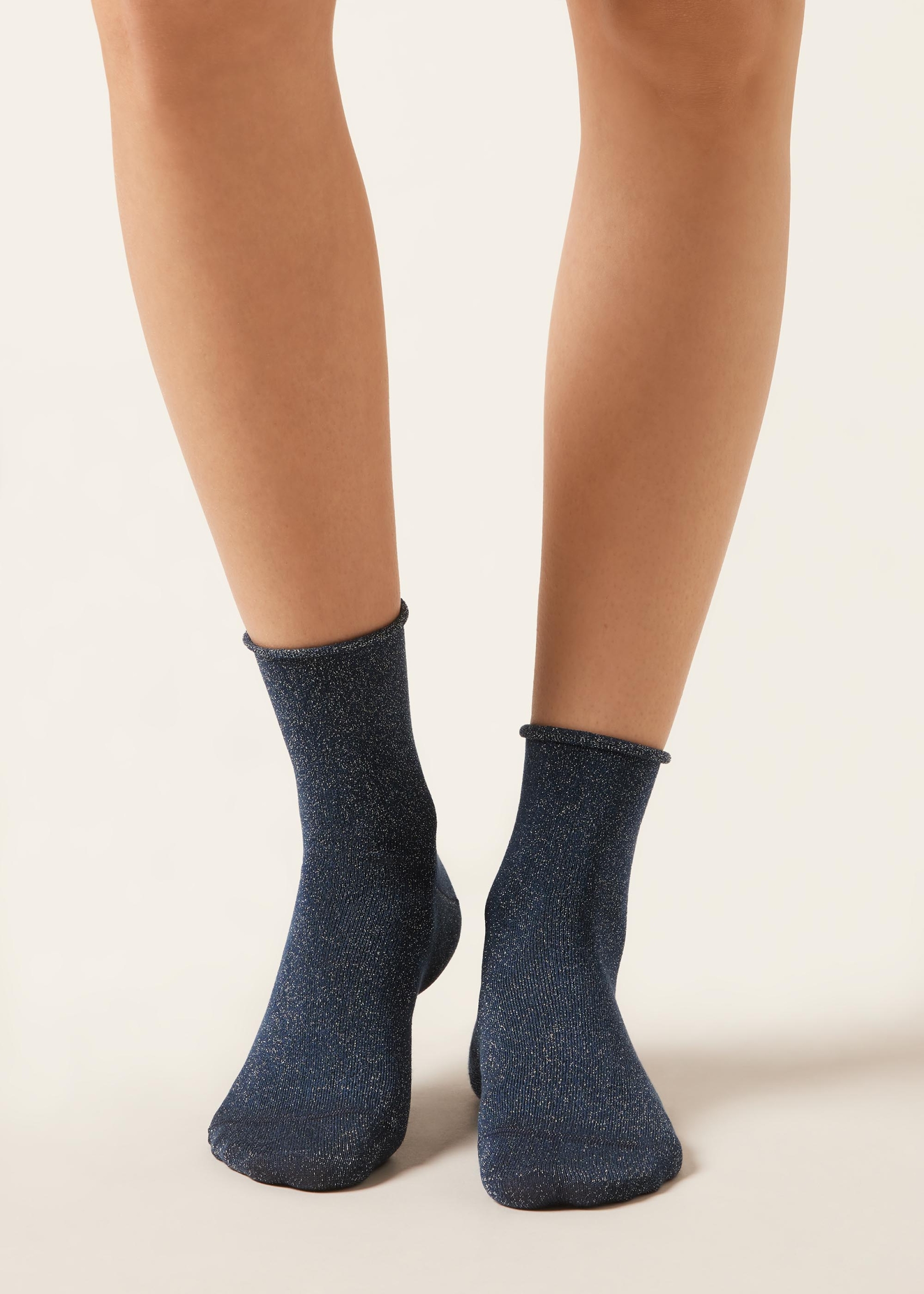 Женские короткие носки с блестками и удобным бортиком. Комфортная модель с легким сиянием.