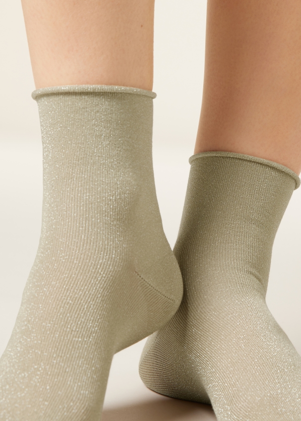 Женские короткие носки с блестками и удобным бортиком. Комфортная модель с легким сиянием.