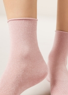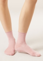 Женские короткие носки с блестками и удобным бортиком. Комфортная модель с легким сиянием.