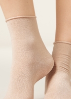 Женские короткие носки с блестками и удобным бортиком. Комфортная модель с легким сиянием.