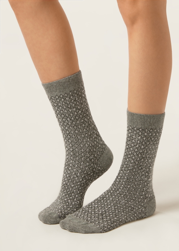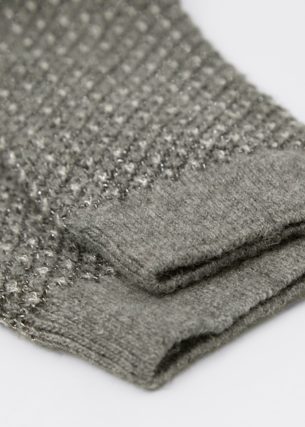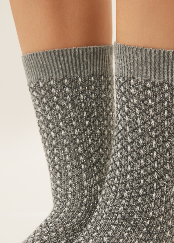 Женские короткие носки из плотной и теплой пряжи с кашемиром. Комфортная модель, украшенная мерцающими блестками.