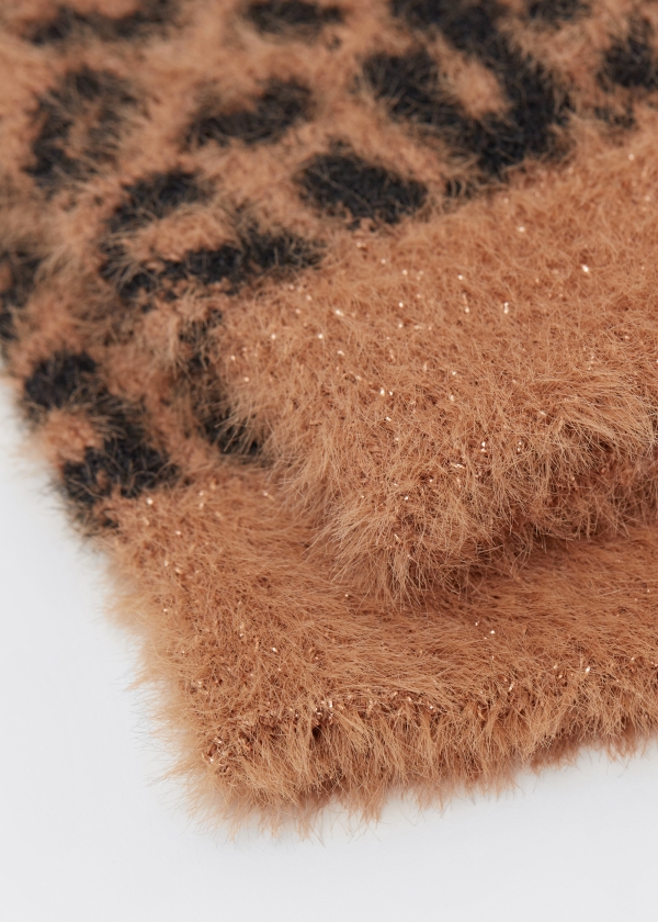 Женские короткие носки из невероятно мягкой на ощупь, теплой и плотной пряжи с изысканным эффектом меха. Эта стильная модель с модным анималистическим рисунком придаст дерзкую нотку зимнему образу.