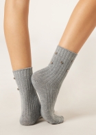 Женские короткие носки с шерстью: эта модель из теплой и плотной пряжи идеально подходит для зимы. Классический рубчик дополняет элегантная отделка камнями, придающая изделию нотку женственности.