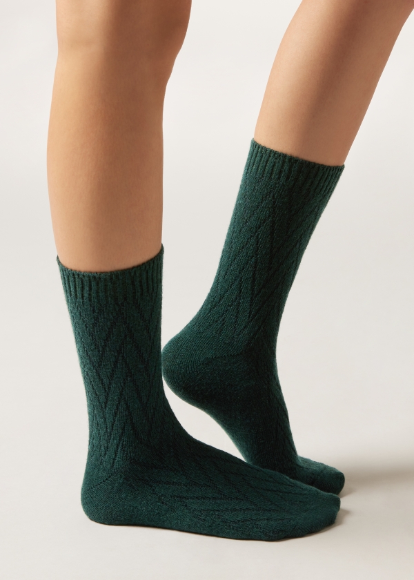 Женские короткие носки с теплым и плотным кашемиром — гармоничное сочетание комфорта и стиля. Эта классическая модель с геометрическим узором идеально подходит для холодной погоды.
