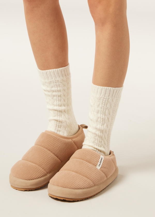 Женские короткие носки с теплым и плотным кашемиром — гармоничное сочетание комфорта и стиля. Эта классическая модель с узором «косичка» идеально подходит для холодной погоды.