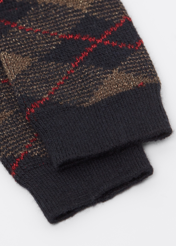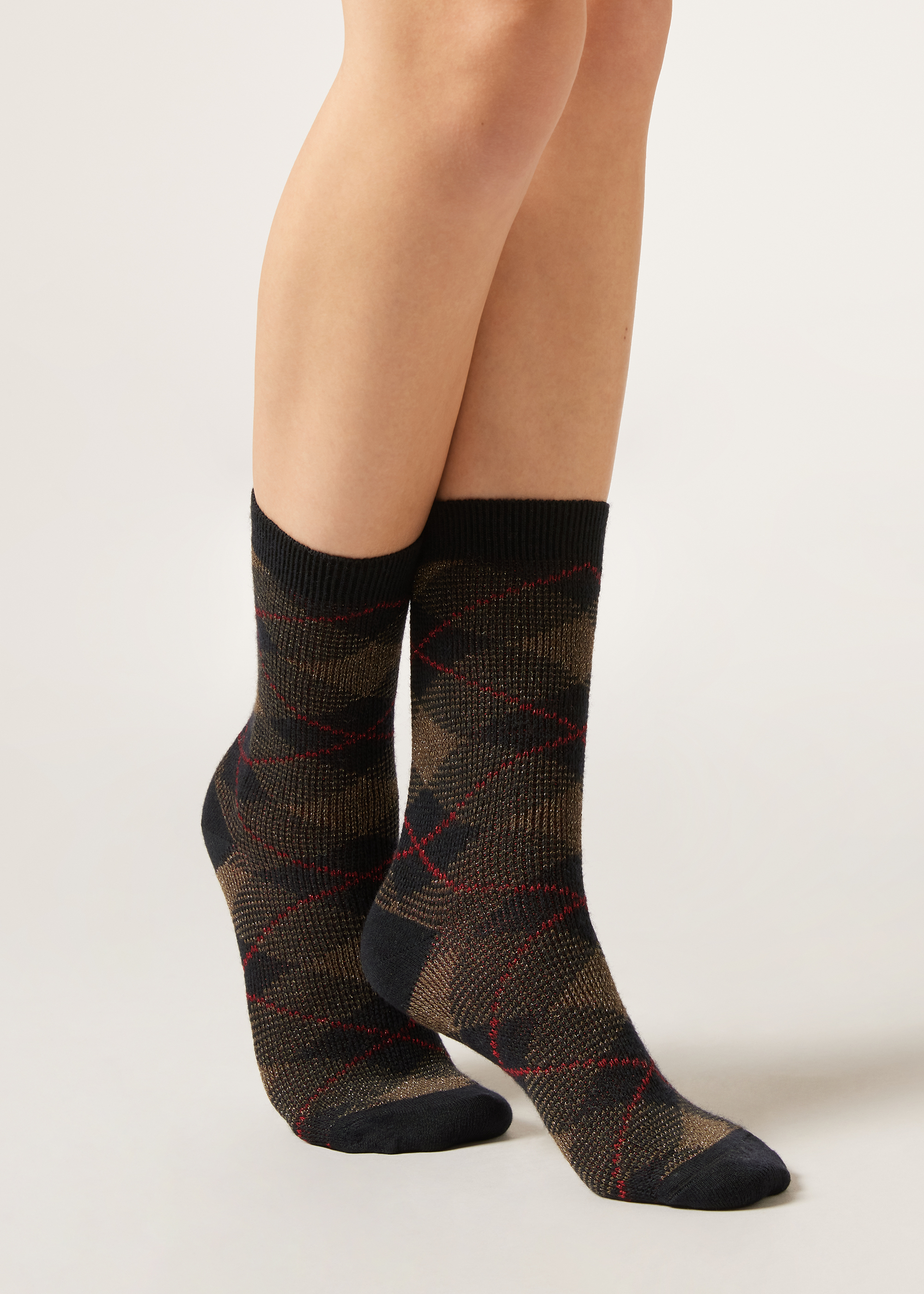 Женские короткие носки из плотной и теплой пряжи с кашемиром. Элегантная модель с узором «тартан» и сияющими блестками.