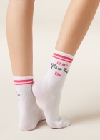 Женские короткие носки из мягкого хлопка в рубчик — идеальное сочетание комфорта и стиля. Этот модный аксессуар с надписями, посвященными теме благополучия и заботы о себе, вносит в ваш образ нотки позитива.