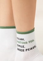 Женские короткие носки из мягкого хлопка в рубчик — идеальное сочетание комфорта и стиля. Этот модный аксессуар с надписями, посвященными теме благополучия и заботы о себе, вносит в ваш образ нотки позитива.