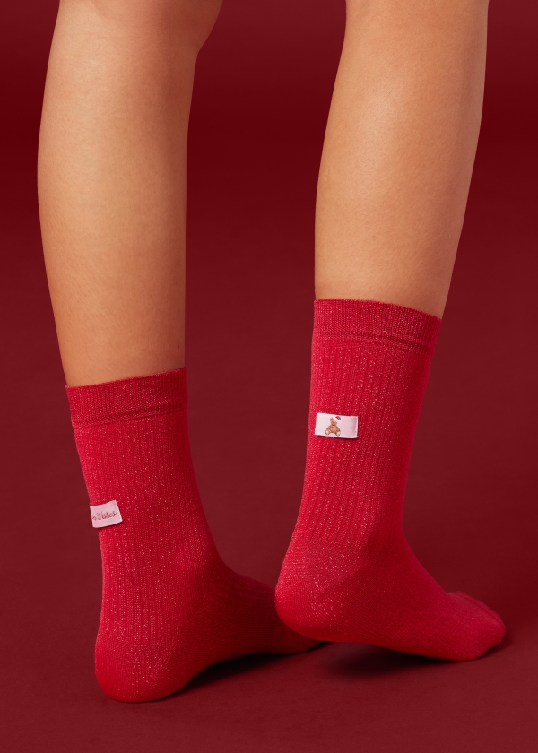 Женские носки из мягкого хлопка, украшенные изящными новогодними деталями. Удобные и дышащие, они идеально подходят для праздничных дней.