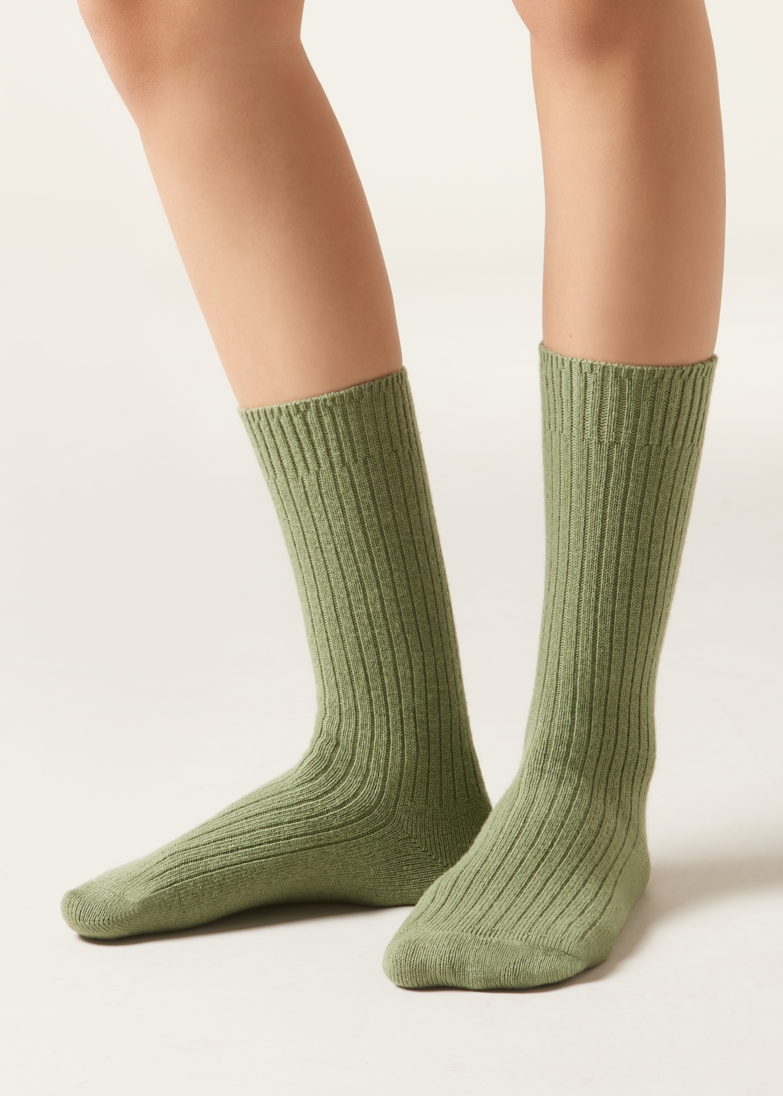 Короткие носки в рубчик из теплой и мягкой пряжи с шерстью и кашемиром.