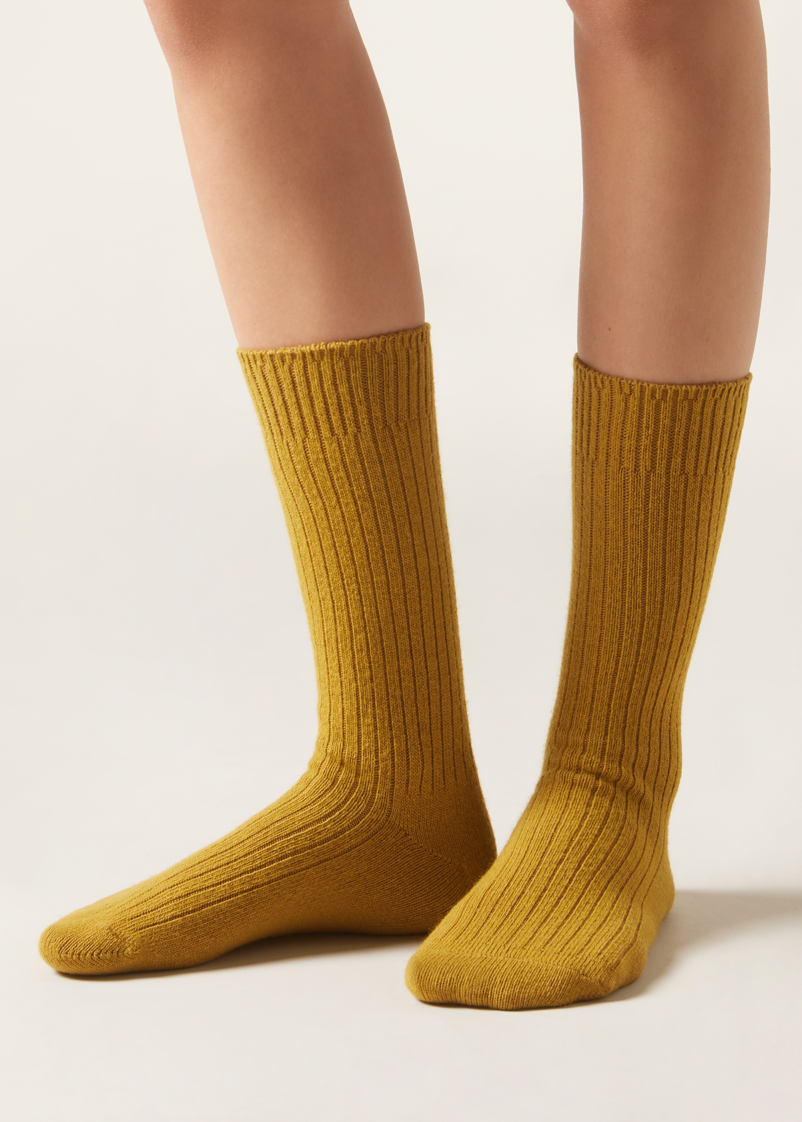 Короткие носки в рубчик из теплой и мягкой пряжи с шерстью и кашемиром.