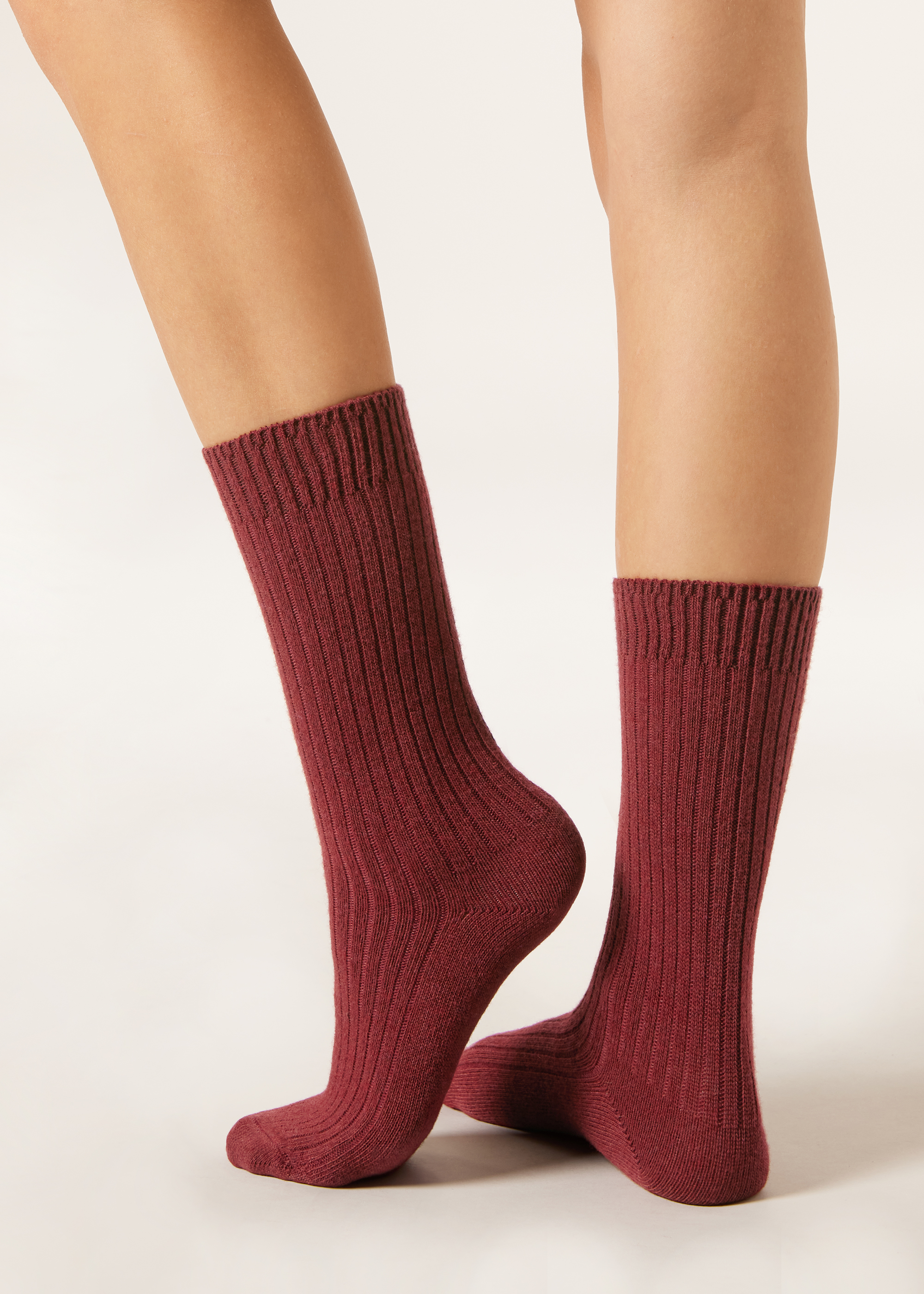 Короткие носки в рубчик из теплой и мягкой пряжи с шерстью и кашемиром.