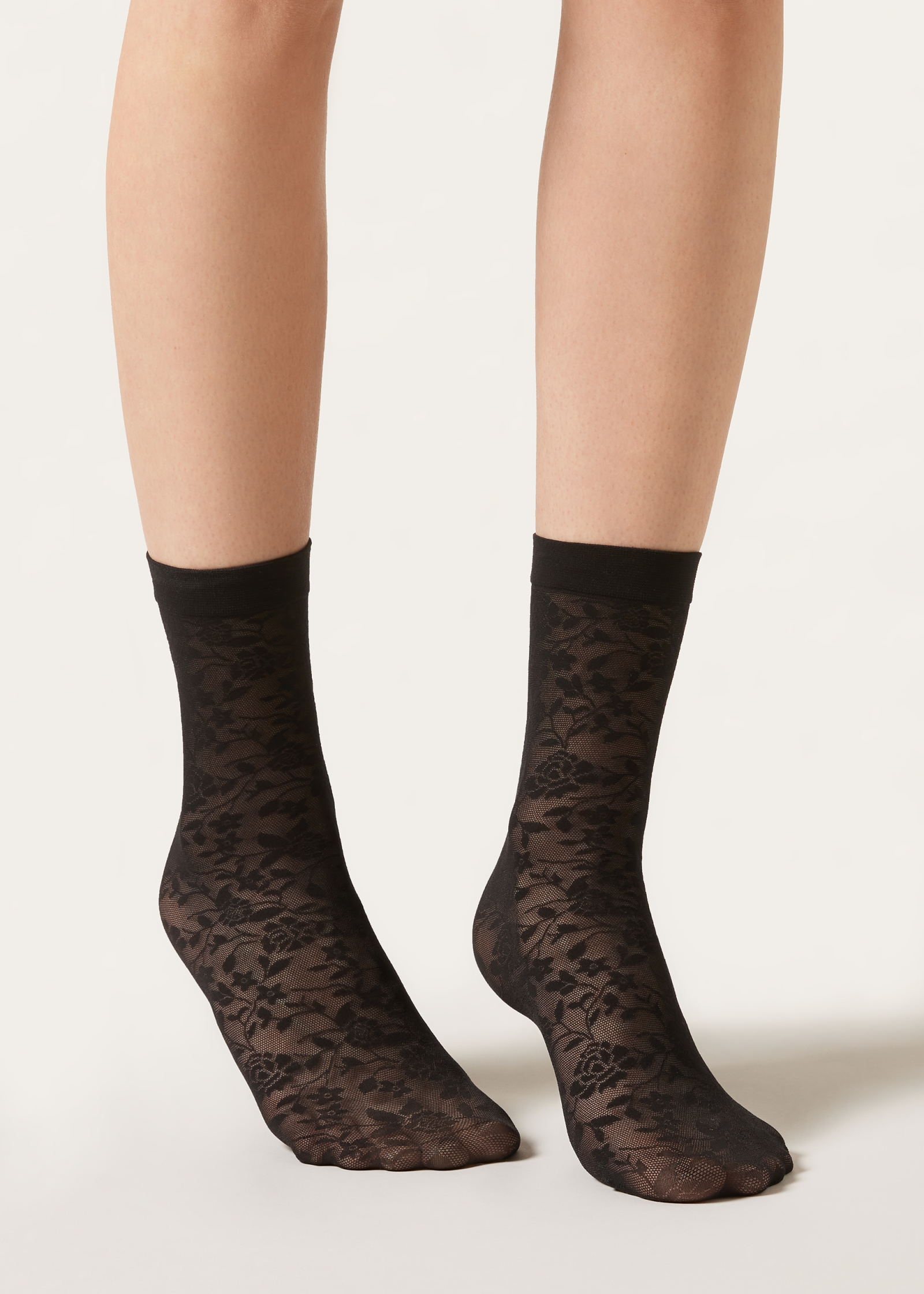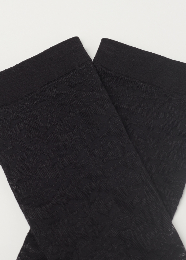 Женские короткие носки из тюля с цветочным узором. Плотность 50 ден. Гладкий бортик.