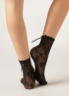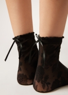 Женские короткие носки в сеточку с элегантным цветочным узором и атласным бантиком. Плотность 30 ден. Эта утонченная и оригинальная модель станет стильным акцентом вашего образа.