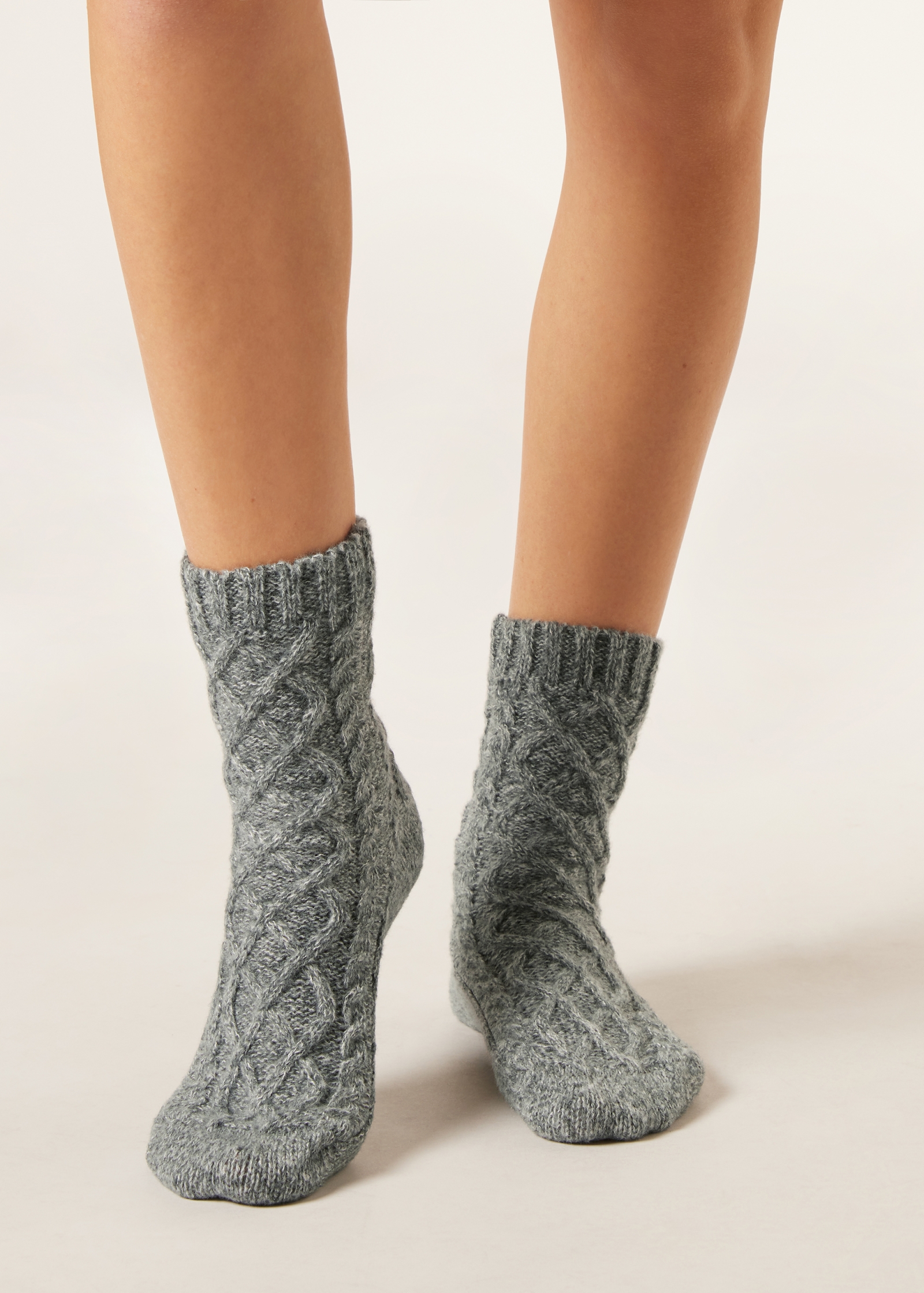 Женские короткие носки из невероятно мягкой, теплой и плотной пряжи. Эта стильная и комфортная модель с классическим узором «косичка» идеально подходит для холодной погоды.