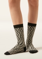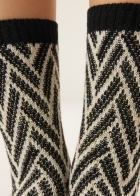 Женские короткие носки из теплой пряжи с кашемиром. Комфортная модель с узором «шеврон» и мерцающими блестками.