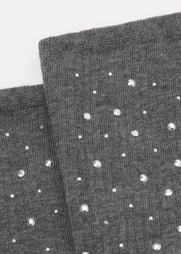 Женские короткие носки из мягкого хлопка в рубчик — идеальное сочетание комфорта и блестящих акцентов. Расположенные спереди заклепки придают изделию особую индивидуальность, внося в образ нотки стиля рок-шик.