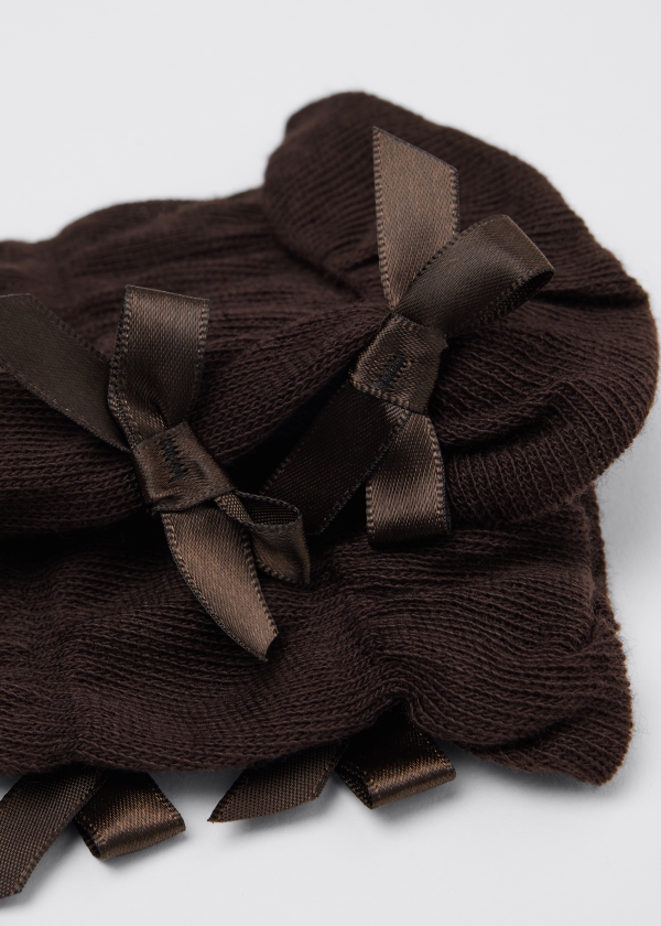 Женские короткие носки из мягкого хлопка — очаровательная модель с оригинальными деталями. Присборенный манжет и бантики сзади придают изделию особую уникальность.
