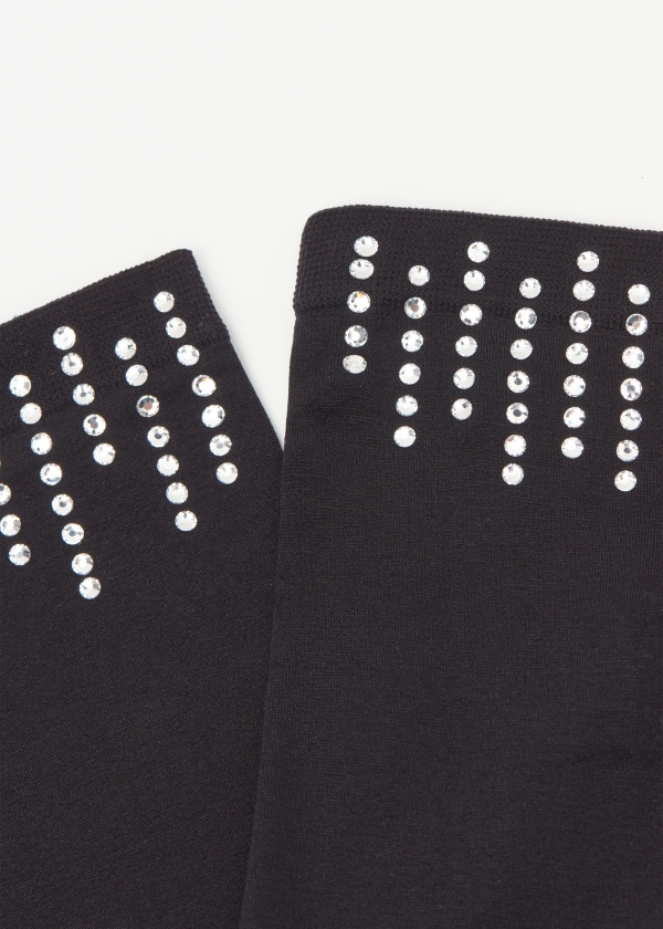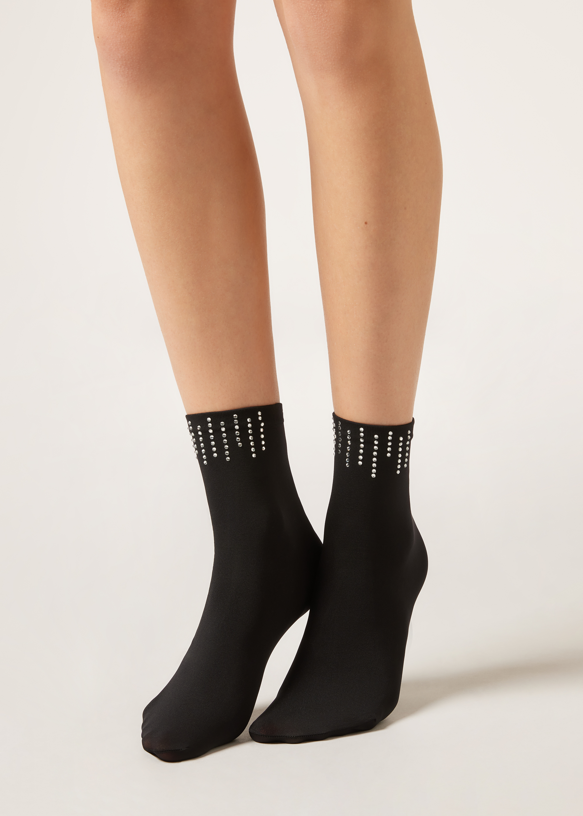 Женские короткие носки из мягкой микрофибры плотностью 50 ден. Низкий бортик с изысканной отделкой в виде каскада страз. Эта удобная и элегантная модель придаст вашему образу нотку блеска.