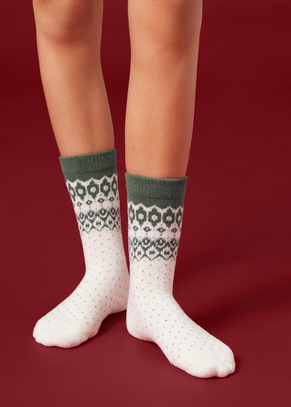 Женские носки из мягкого хлопка Soft с элегантным новогодним узором в норвежском стиле. Удобные и дышащие, они идеально подходят для праздничных дней.