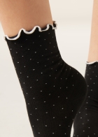 Женские короткие носки из мягкого хлопка. Элегантная модель в мелкий горошек. Мягкий бортик с вышивкой контрастного цвета. Эти удобные и универсальные носки внесут в ваш образ изящную нотку классического стиля.