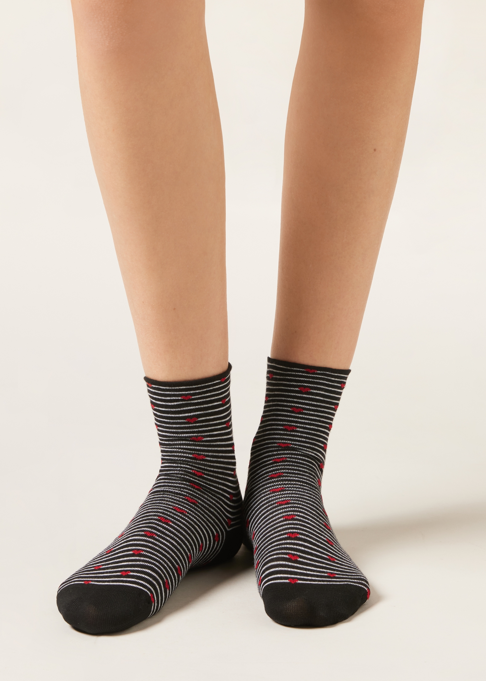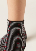 Женские короткие носки из мягкого хлопка с сердечками на фоне полосок — непревзойденное сочетание повседневного комфорта и женственного стиля.