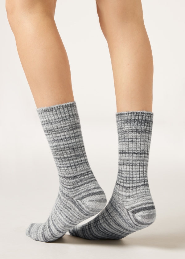 Женские короткие носки из плотной и теплой пряжи с шерстью. Комфортная модель в мелкий рубчик с оригинальной расцветкой.