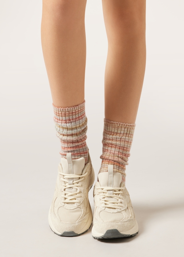 Женские короткие носки из плотной и теплой пряжи с шерстью. Комфортная модель в мелкий рубчик с оригинальной расцветкой.