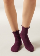 Женские короткие носки из хлопка в рубчик. Бортик в романтичном стиле.