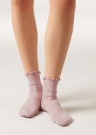 Женские короткие носки из хлопка в рубчик. Бортик в романтичном стиле.