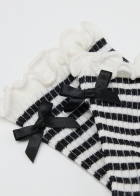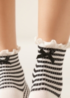 Женские короткие носки в рубчик из мягкого хлопка. Бортик с изящной волнистый отделкой украшен небольшим бантиком. Эта женственная модель в романтическом стиле станет очаровательным акцентом для любого образа.