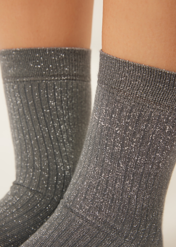 Женские короткие носки в рубчик. Благодаря бортику с блестками стильная модель станет сверкающим акцентом вашего образа. Эти удобные носки из мягкой комфортной пряжи обеспечивают оптимальное прилегание и позволяют внести гламурную нотку в любой образ — от повседневного до элегантного.