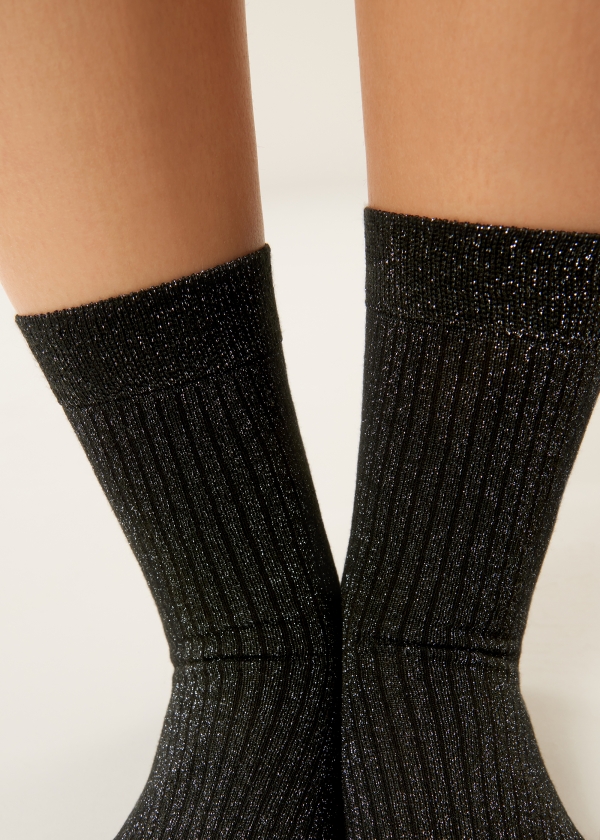 Женские короткие носки в рубчик. Благодаря бортику с блестками стильная модель станет сверкающим акцентом вашего образа. Эти удобные носки из мягкой комфортной пряжи обеспечивают оптимальное прилегание и позволяют внести гламурную нотку в любой образ — от повседневного до элегантного.