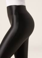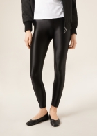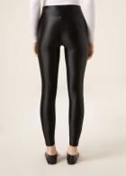 Очень блестящие женские легинсы скинни из эластичной сатинированной ткани с эффектом шелка. Пояс с мягкой резинкой внутри.