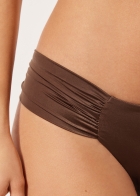 Плавки бразильяно. Драпировка по бокам позволяет регулировать их ширину. Очень мягкая блестящая ткань с эффектом шелка. Сплошная подкладка с невидимыми швами.