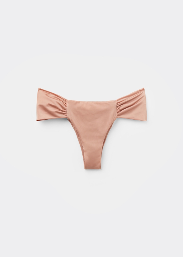 Плавки бразильяно. Драпировка по бокам позволяет регулировать их ширину. Очень мягкая блестящая ткань с эффектом шелка. Сплошная подкладка с невидимыми швами.