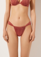 Плавки бразильяно с мягкими боковыми деталями. Блестящая ткань с эффектом шелка. Драпировка. Сплошная подкладка и невидимые швы.