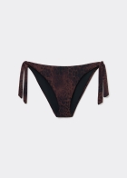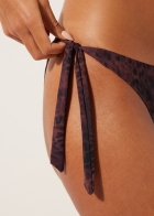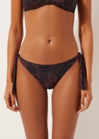 Плавки-бикини с завязками по бокам для регулировки посадки. Леопардовый принт в тёмно-коричневых и чёрных тонах создаёт смелый и утончённый стиль. Слегка закруглённая линия талии позволяет носить их как в классическом, так и в более высоком варианте. Полностью на подкладке с невидимыми швами.