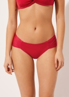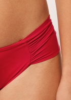 Классические плавки с драпировкой, регулирующей высоту боковых деталей. Благодаря особой мягкости ткани изделие приятно прилегает к коже, создавая ощущение легкости и комфорта. Сплошная подкладка и невидимые швы.